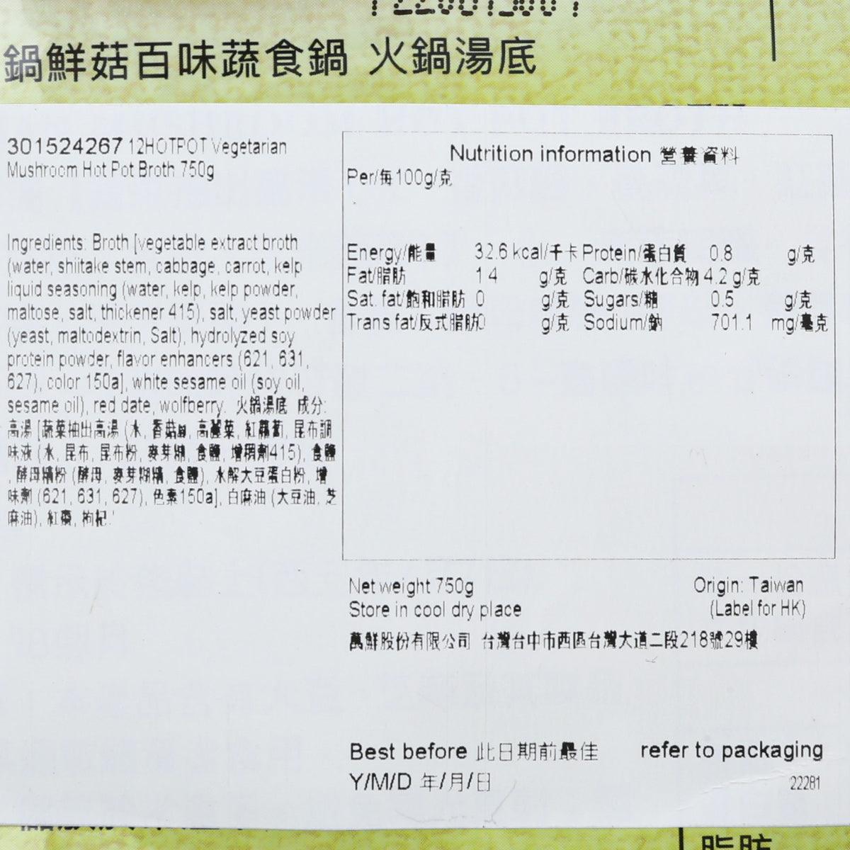12HOTPOT Vegetarian Mushroom Hot Pot Broth (750g)