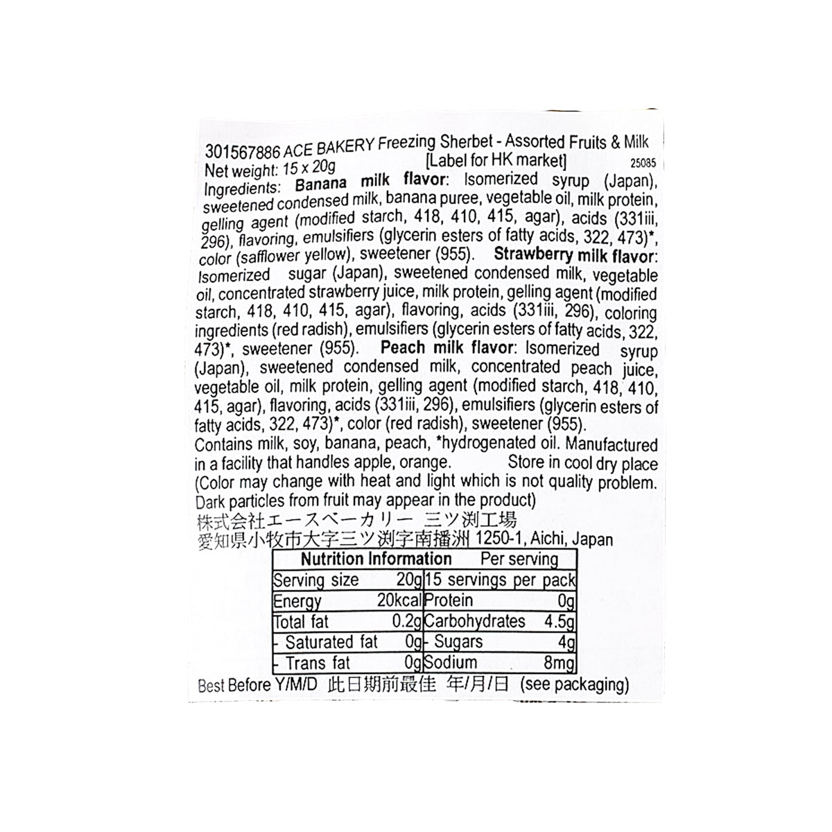 ACE BAKERY Freezing Sherbet - Assorted Fruits & Milk (15 x 20g)