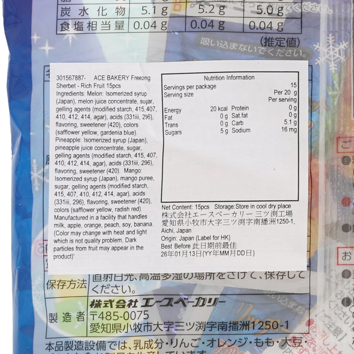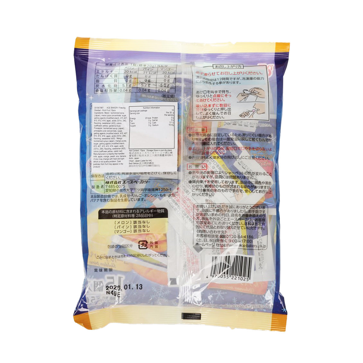 ACE BAKERY Freezing Sherbet - Rich Fruit (15pcs)