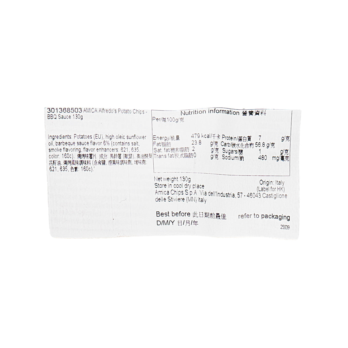 AMICA Alfredo's Potato Chips - BBQ Sauce (130g)