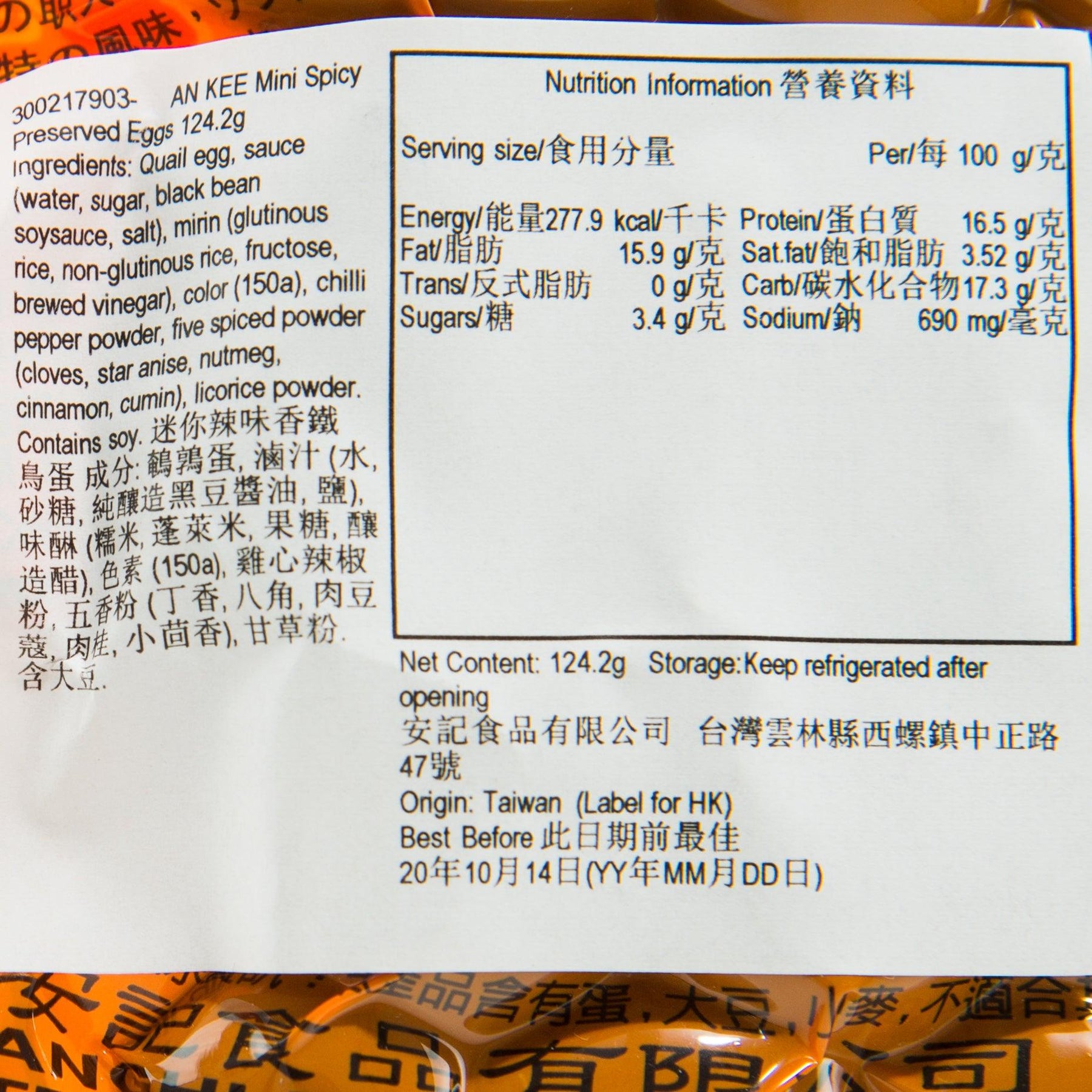 For two decades, the Taiwanese brand AN KEE, has adhered to the ancient production methods, and insisted on never using any preservatives or artificial colours. This classic and traditional Spicy Preserved Egg is s brined in the soy sauce, then vacuum-packed. Spicy and delicious, this one-bite size spicy preserved egg will keep you wanting more!