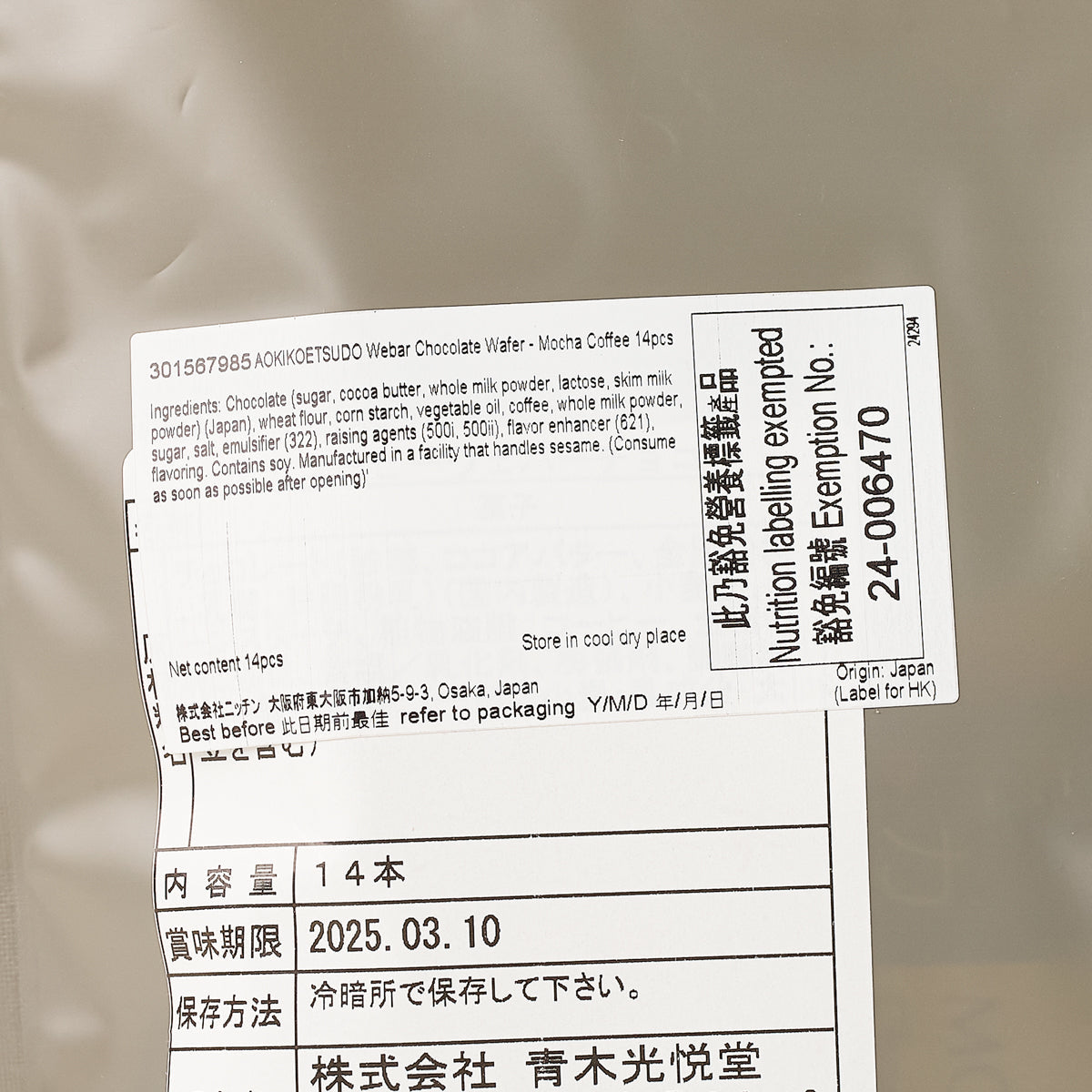 AOKIKOETSUDO Webar Chocolate Wafer - Mocha Coffee (14pcs)