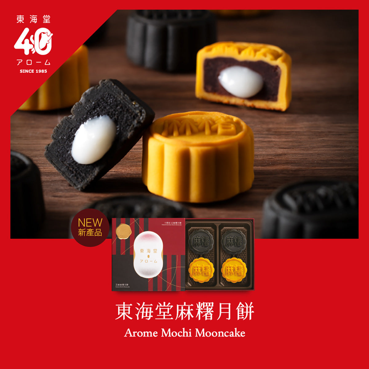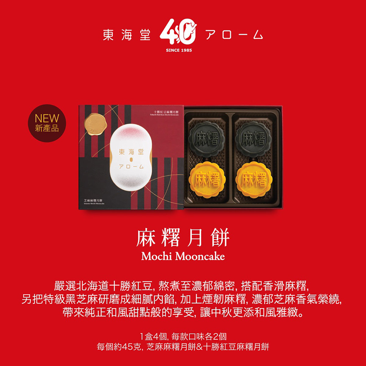 Introducing the new Mochi Mooncake. Savor two exquisite flavours crafted for a refreshing taste experience. Tokachi Red Bean Mochi Mooncake - Premium Hokkaido red beans are gently simmered to a rich, velvety texture and wrapped in silky mochi. For a bolder profile – Sesame Mochi Mooncake, finely ground black sesame is paired with chewy mochi, releasing a deep, lingering aroma.