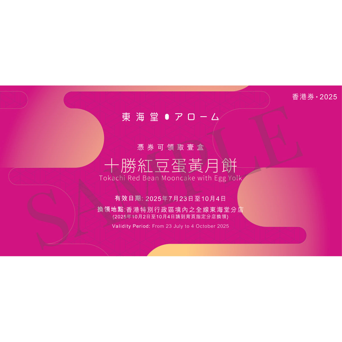 - Redemption period: 23 July 2025 to 1 October 2025 (Arome branches of HKSAR) / 2 October 2025 to 04 October 2025 (Designated Arome branches of HKSAR).
