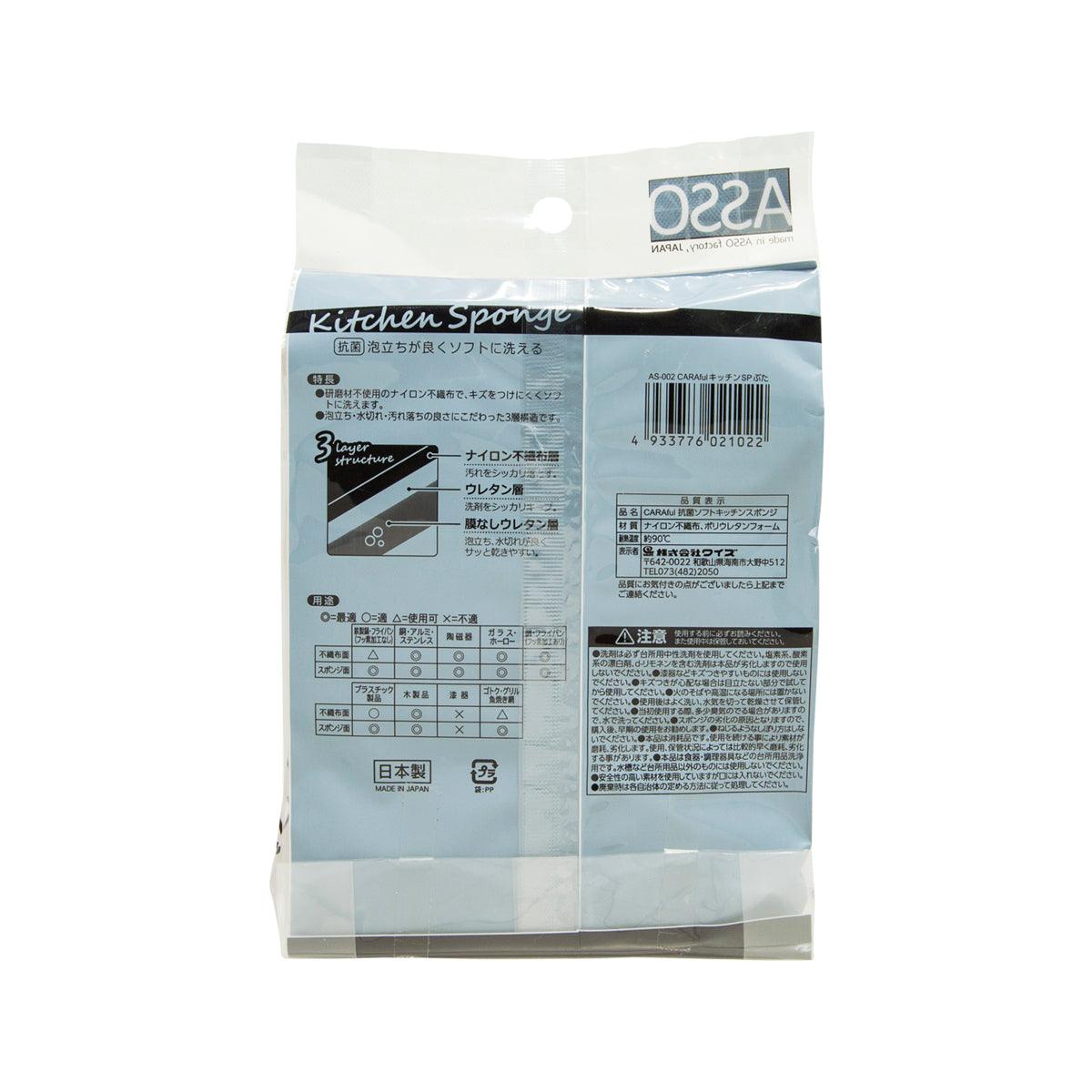 Made in Japan, this Kitchen Sponge has a three-layer structure consisting of a nylon nonwoven fabric layer, urethane layer, and urethane layer without a film, offering the good and effective foaming, draining and dirt removal. The abrasive-free nylon non-woven fabric that is hard to scratch and can be washed softly, it is anti-bacteria too!