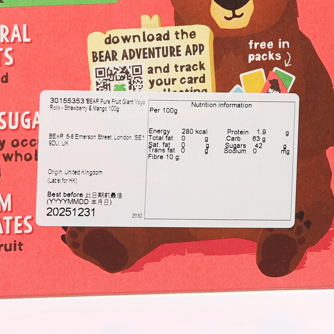 BEAR Pure Fruit Giant Yoyo Rolls - Strawberry & Mango (100g)