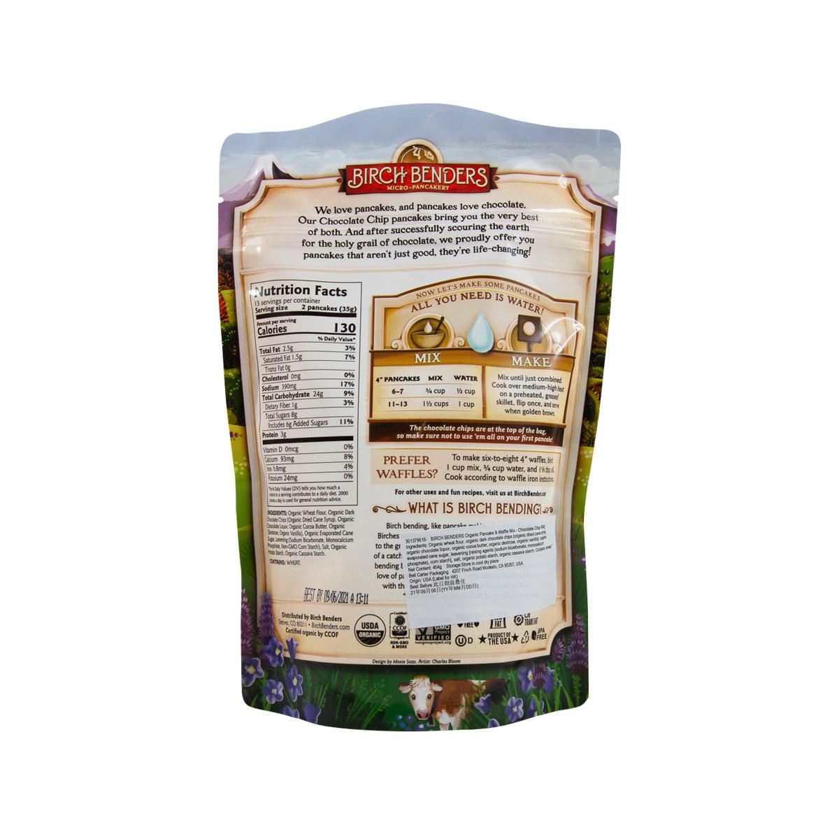 BIRCH BENDERS Organic Pancake & Waffle Mix - Chocolate Chip (454g)