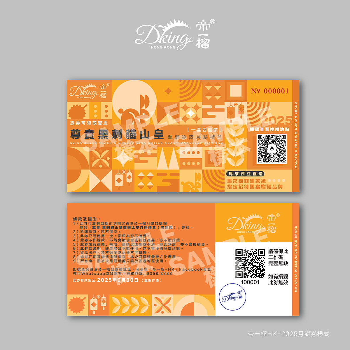 DKING Black Thorn x Musang King Durian Snowy Mooncake Gift Box (4pcs) Coupon (1pc)
