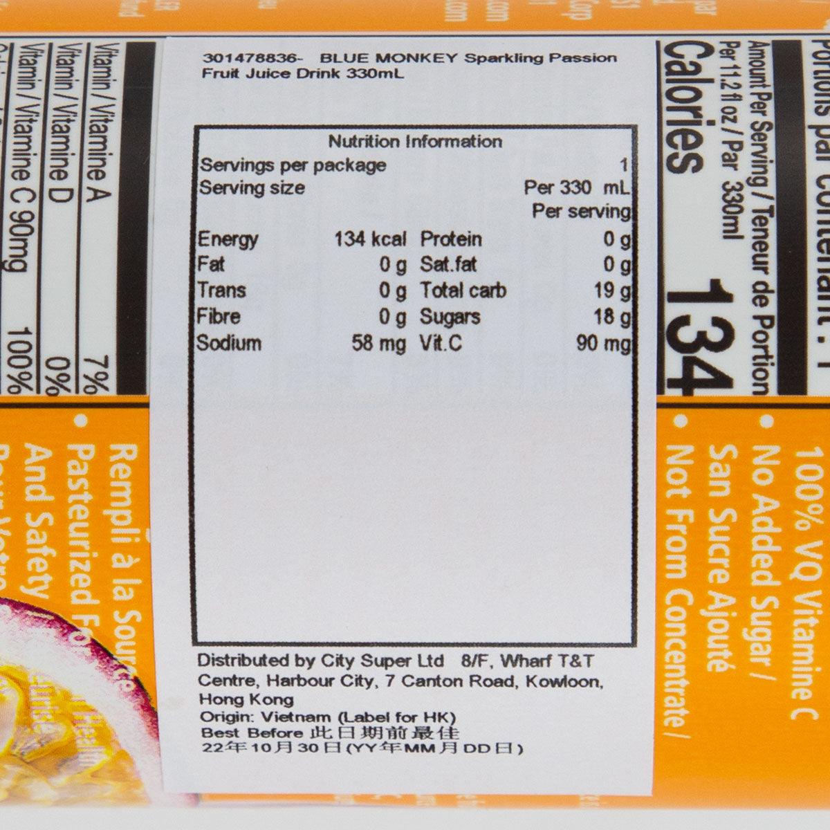BLUE MONKEY Sparkling Passion Fruit Juice Drink  (330mL)