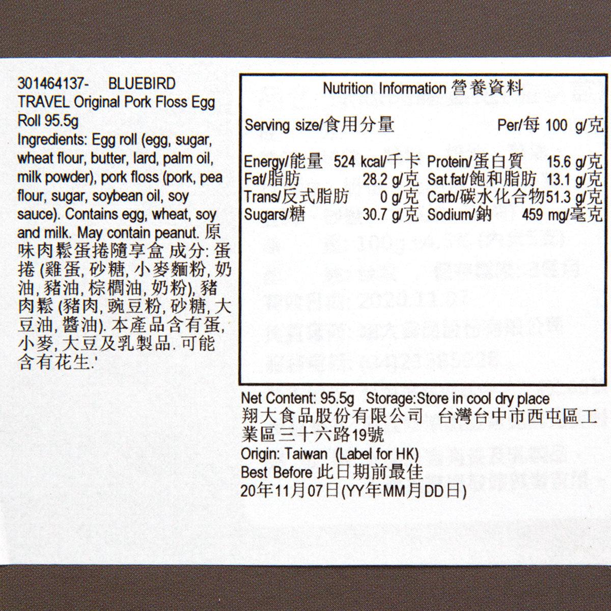 BLUEBIRD TRAVEL Original Pork Floss Egg Roll (95.5g)