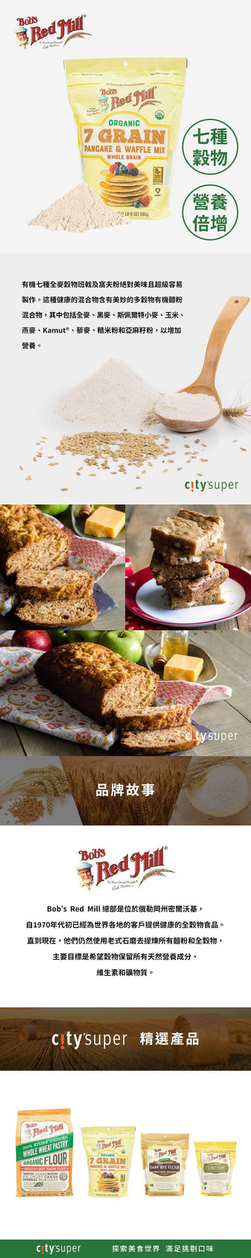 The Organic 7 Grain Pancake Waffle Mix is absolutely delicious and super easy to make. This healthy blend contains a wonderful multigrain organic flour blend that includes whole wheat, rye, spelt, corn, oats, Kamut®, quinoa, brown rice flour and flaxseed flour for added nutrition.