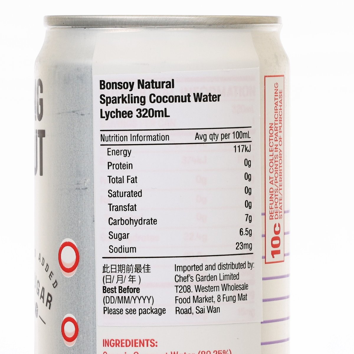 BONSOY Natural Sparkling Coconut Water - Lychee  (320mL)