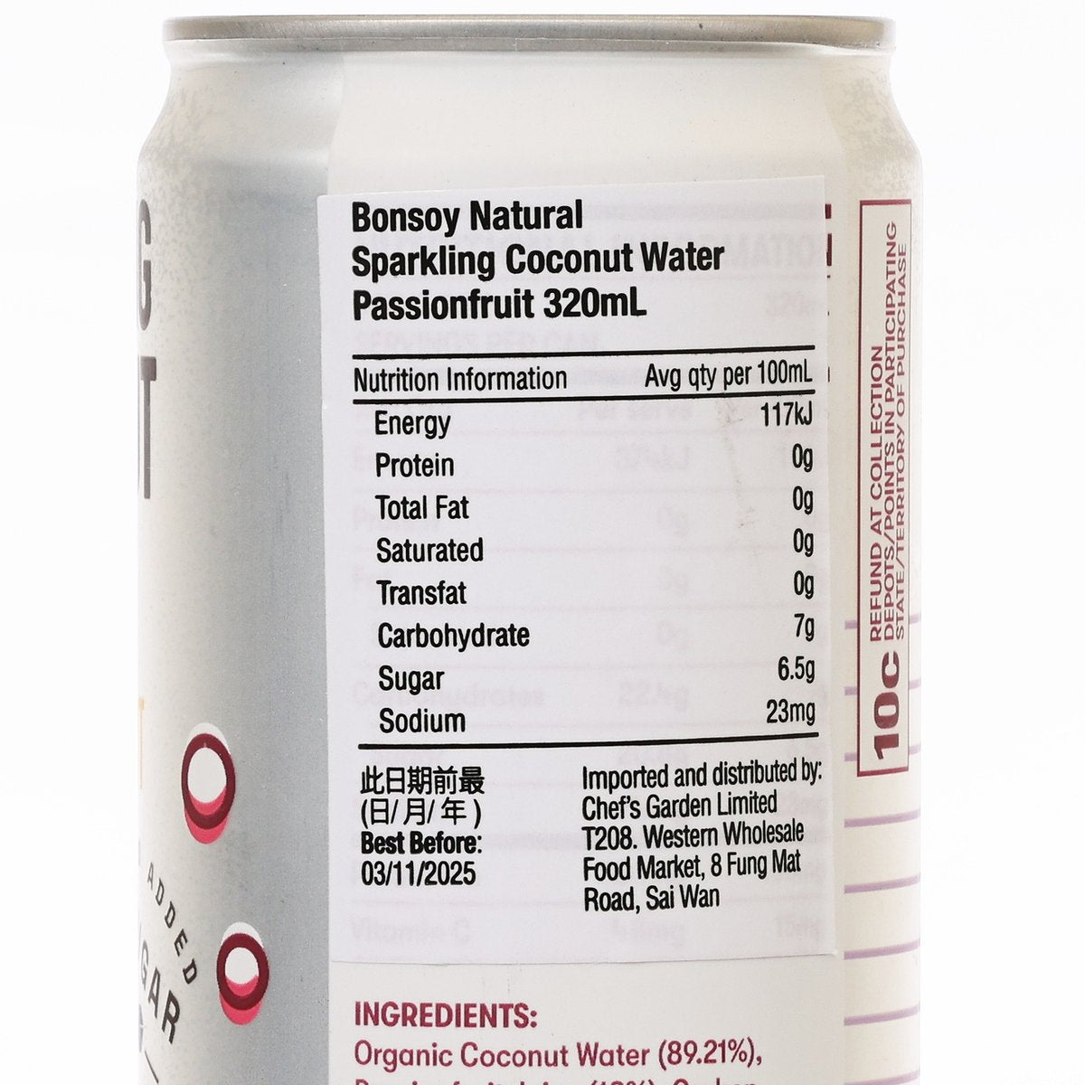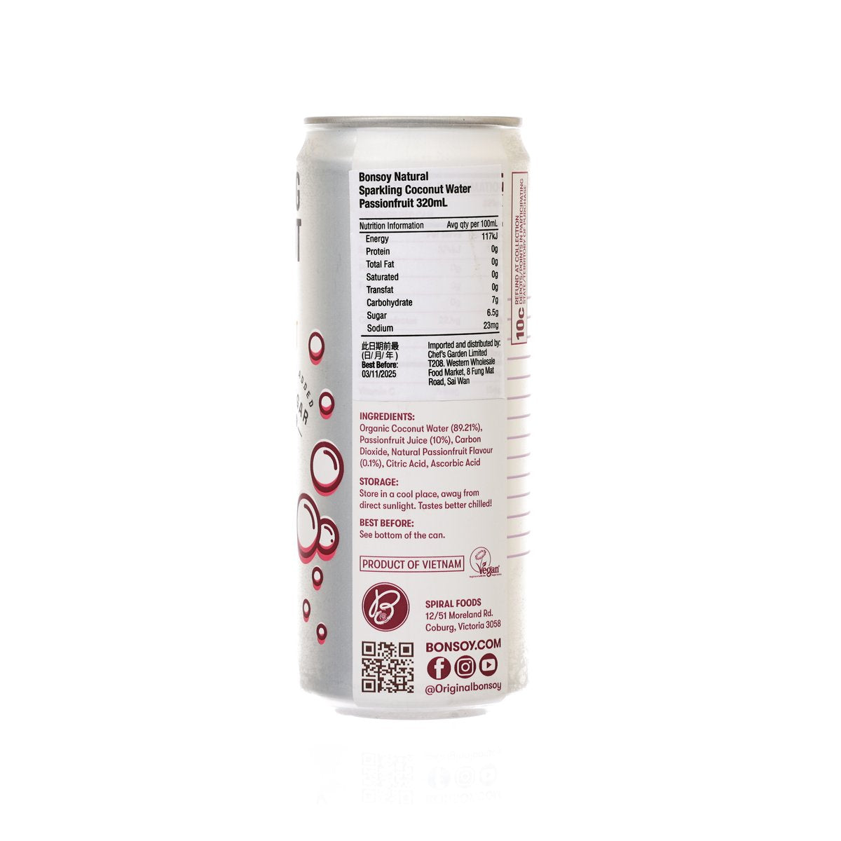 BONSOY Natural Sparkling Coconut Water - Passionfruit (320mL)
