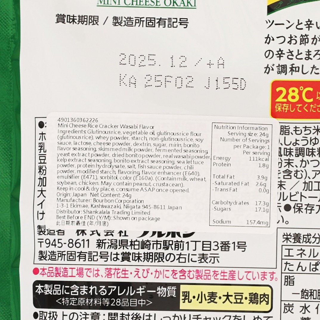 BOURBON Cheese Okaki Rice Cracker - Wasabi  (24g)