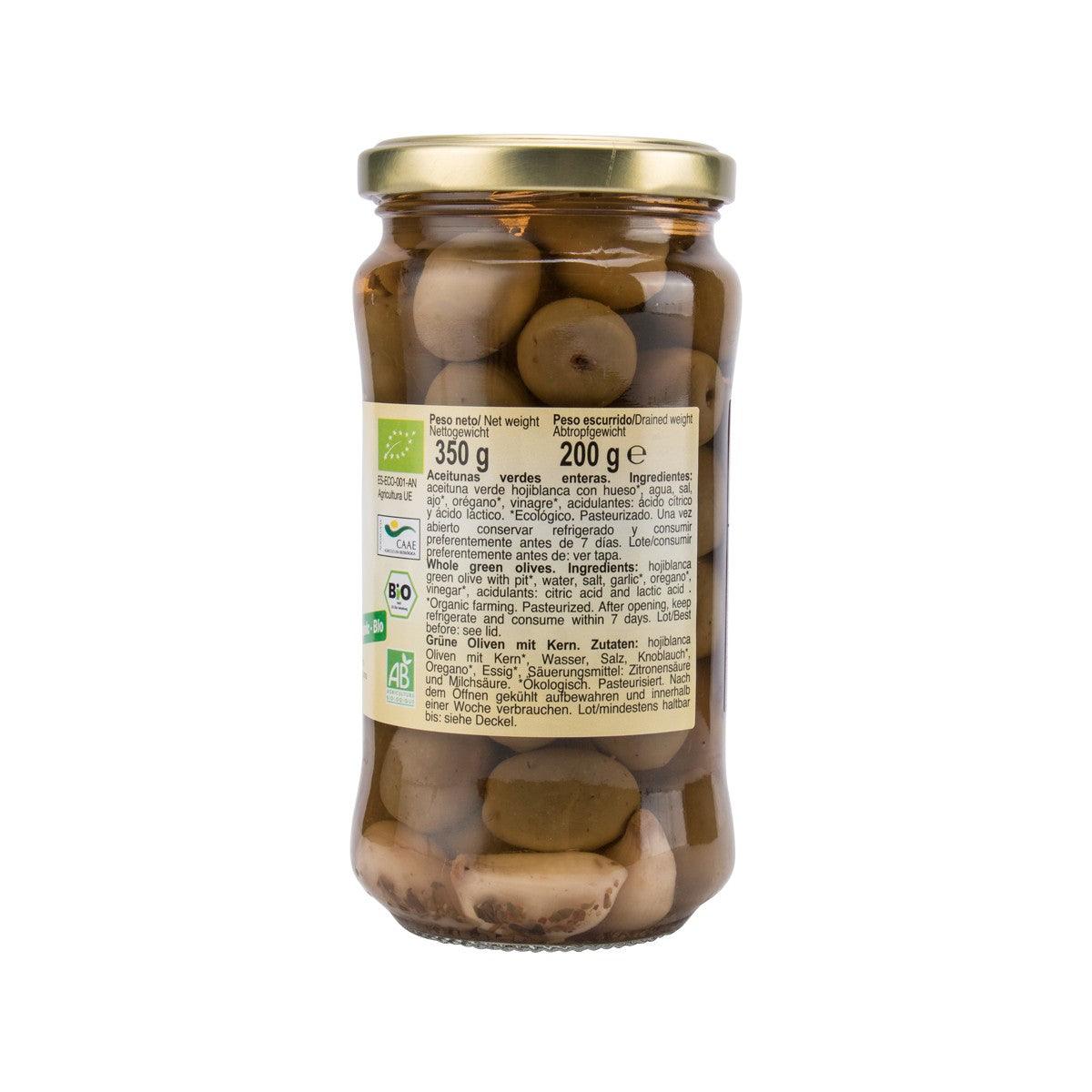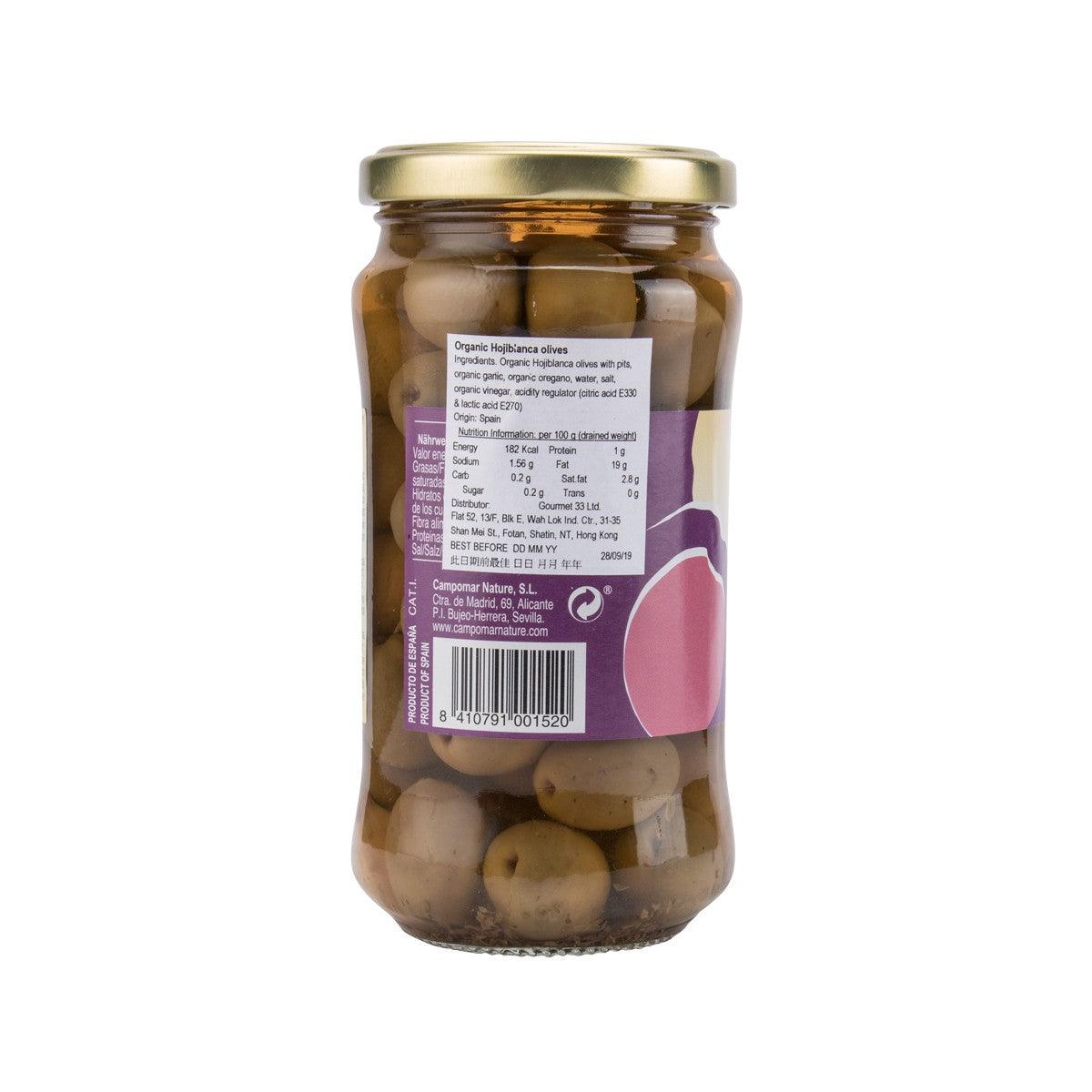 CAMPOMAR Organic Hojiblanca Olives with Garlic and Oregano  (350g)