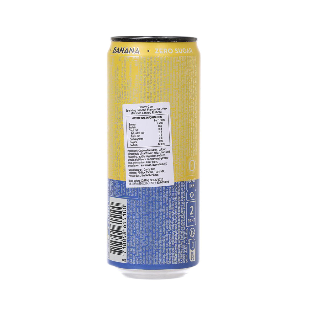 CANDY CAN Minions Limited Edition Sparkling Banana Flavoured Drink - Zero Sugar [Can] (330mL)