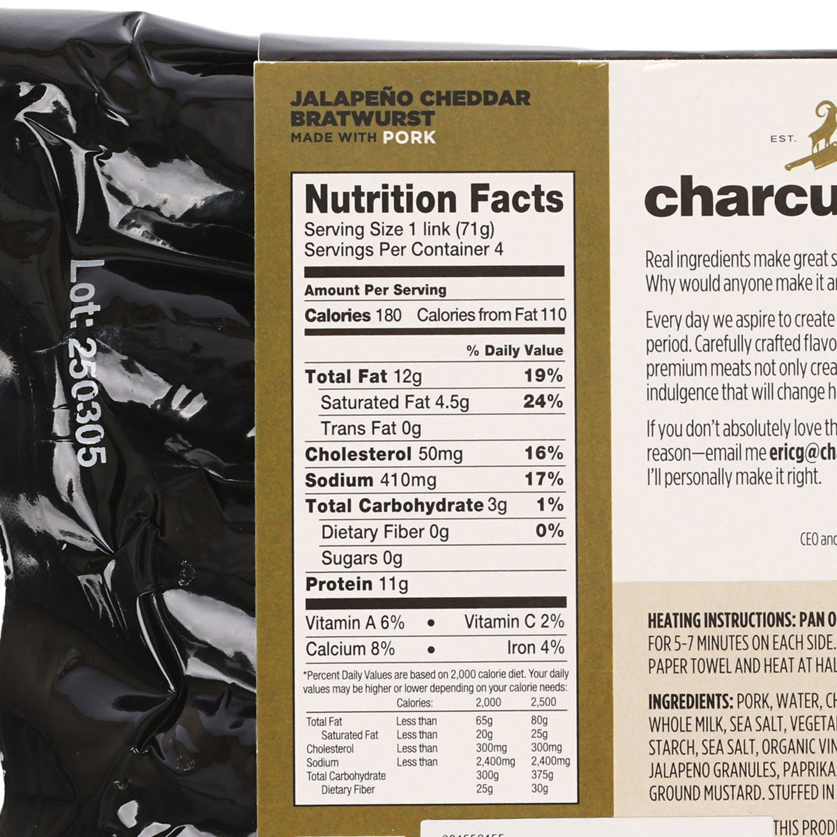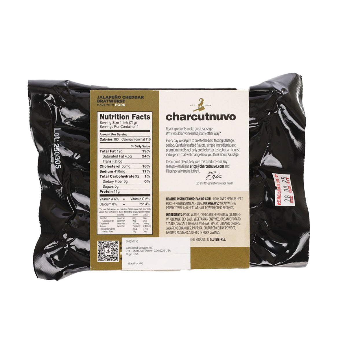 CHARCUTNUVO Jalapeno Cheddar Bratwurst Sausage (10oz)