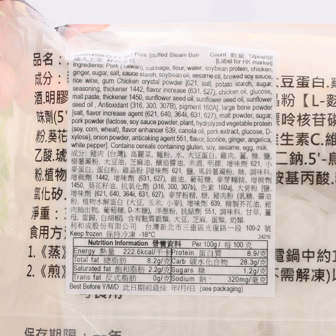 CHEF TAT frozen stuffed steam buns are a saviour for your sudden hunger throughout the day. A replica of Xiaolongbao in dimsum restaurants, the exterior chewy texture and bursting hot soup within, can now be easily enjoyed after minutes of oven steaming.