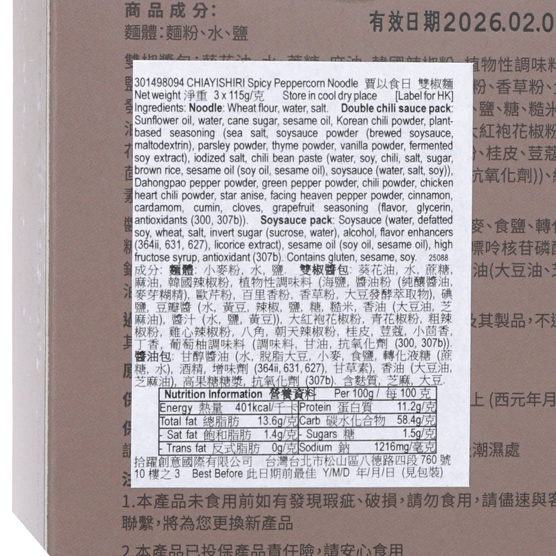 CHIAYISHIRI Spicy Peppercorn Noodle (3 x 115g)