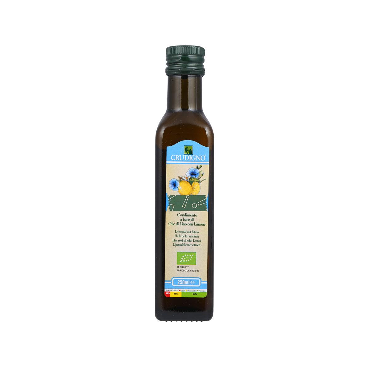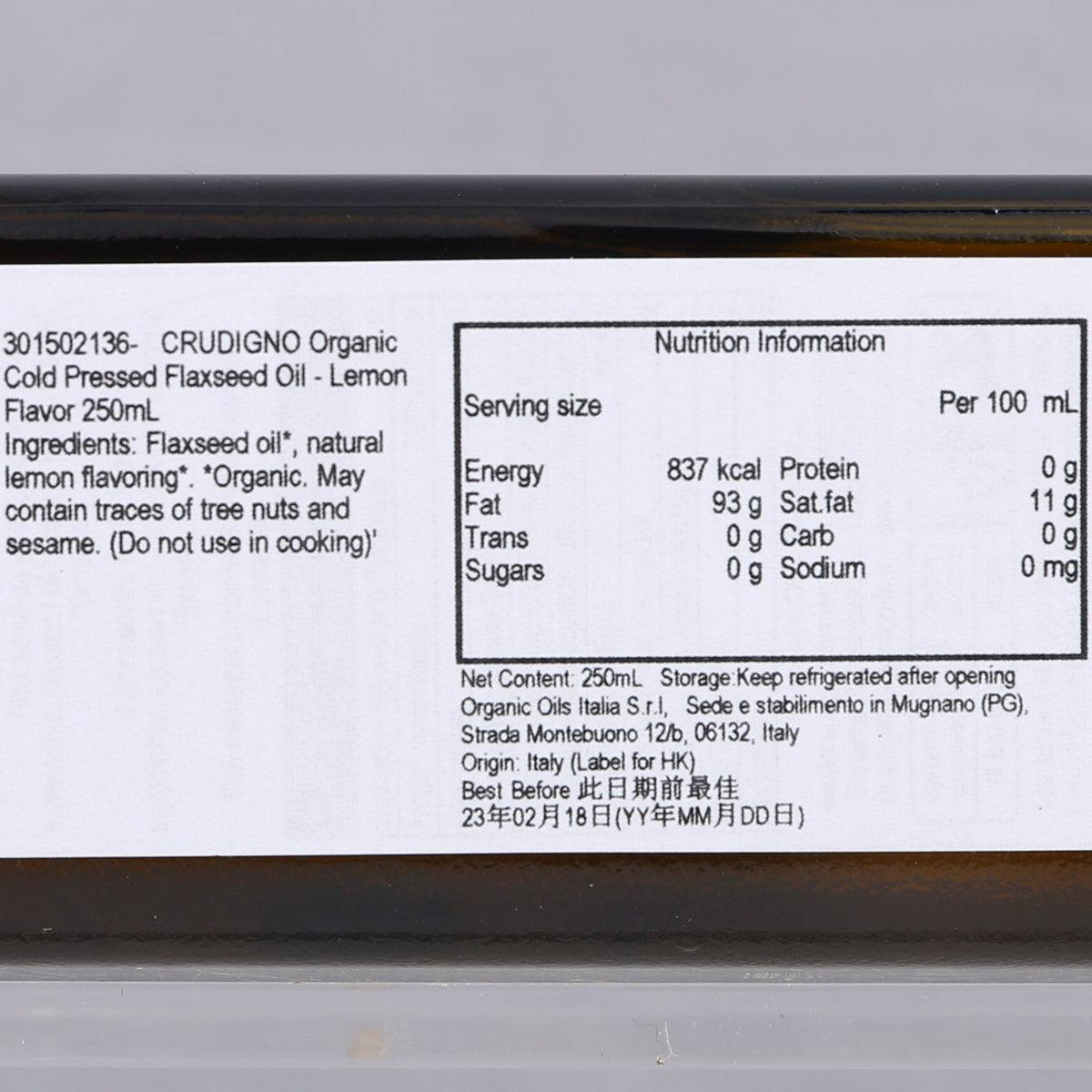 CRUDIGNO Organic Cold Pressed Flaxseed Oil - Lemon Flavor (250mL)