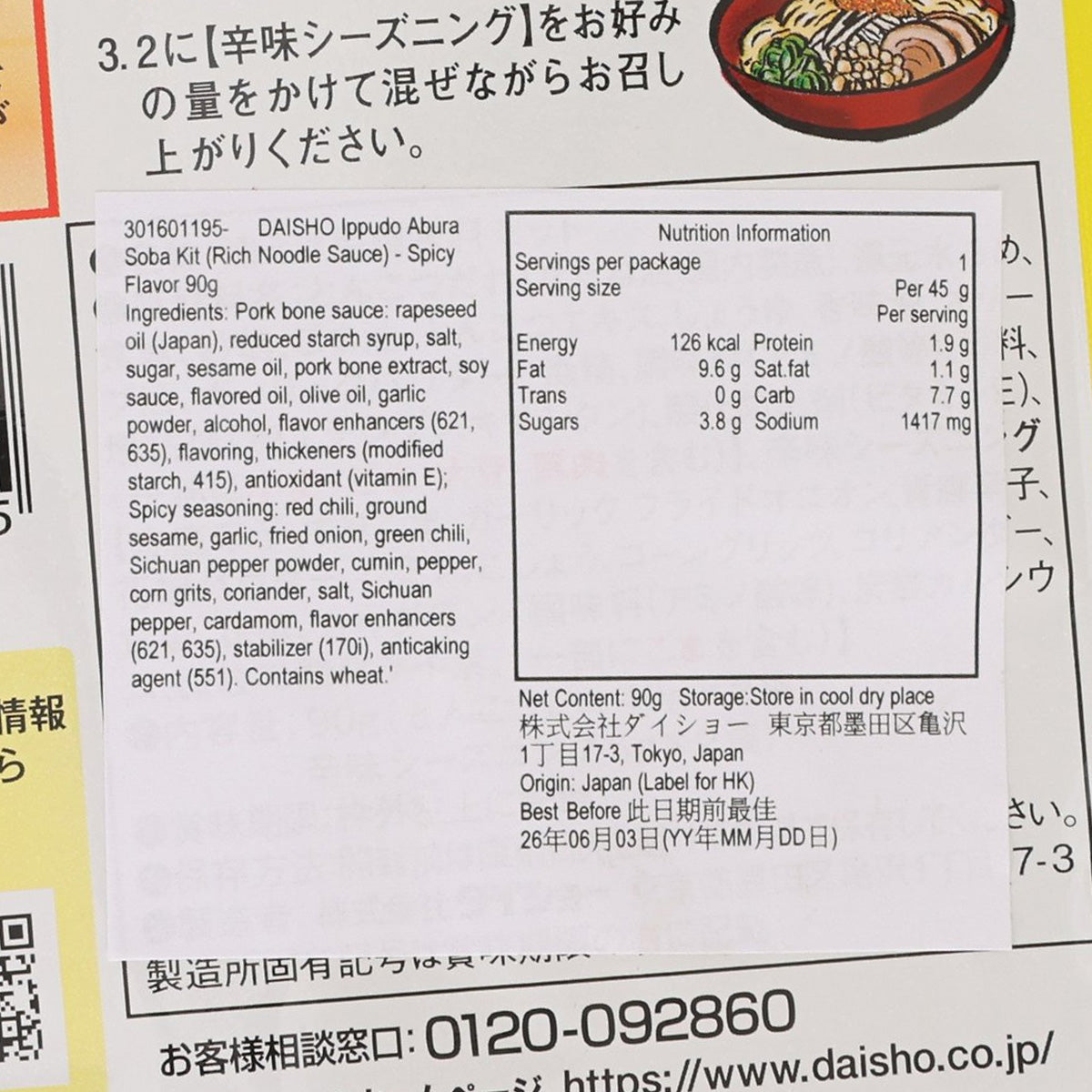 DAISHO Ippudo Abura Soba Kit (Rich Noodle Sauce) - Spicy Flavor  (90g)