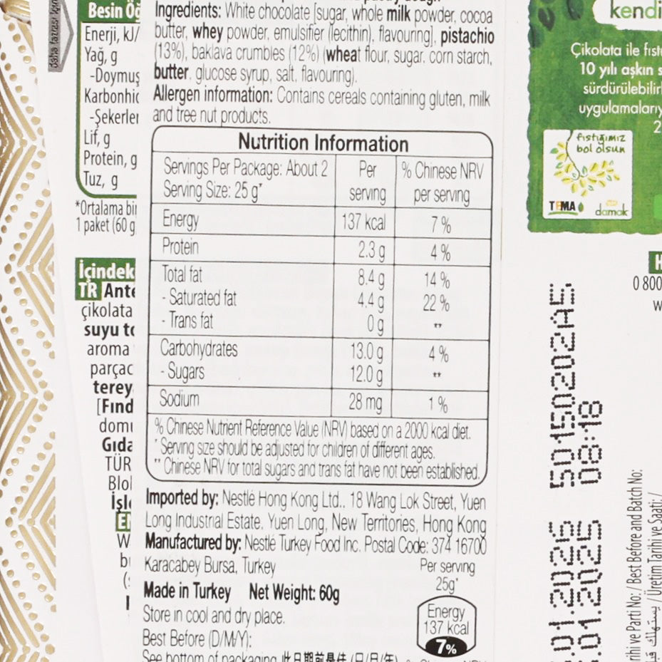DAMAK White Chocolate with Pistachio Baklava (60g)