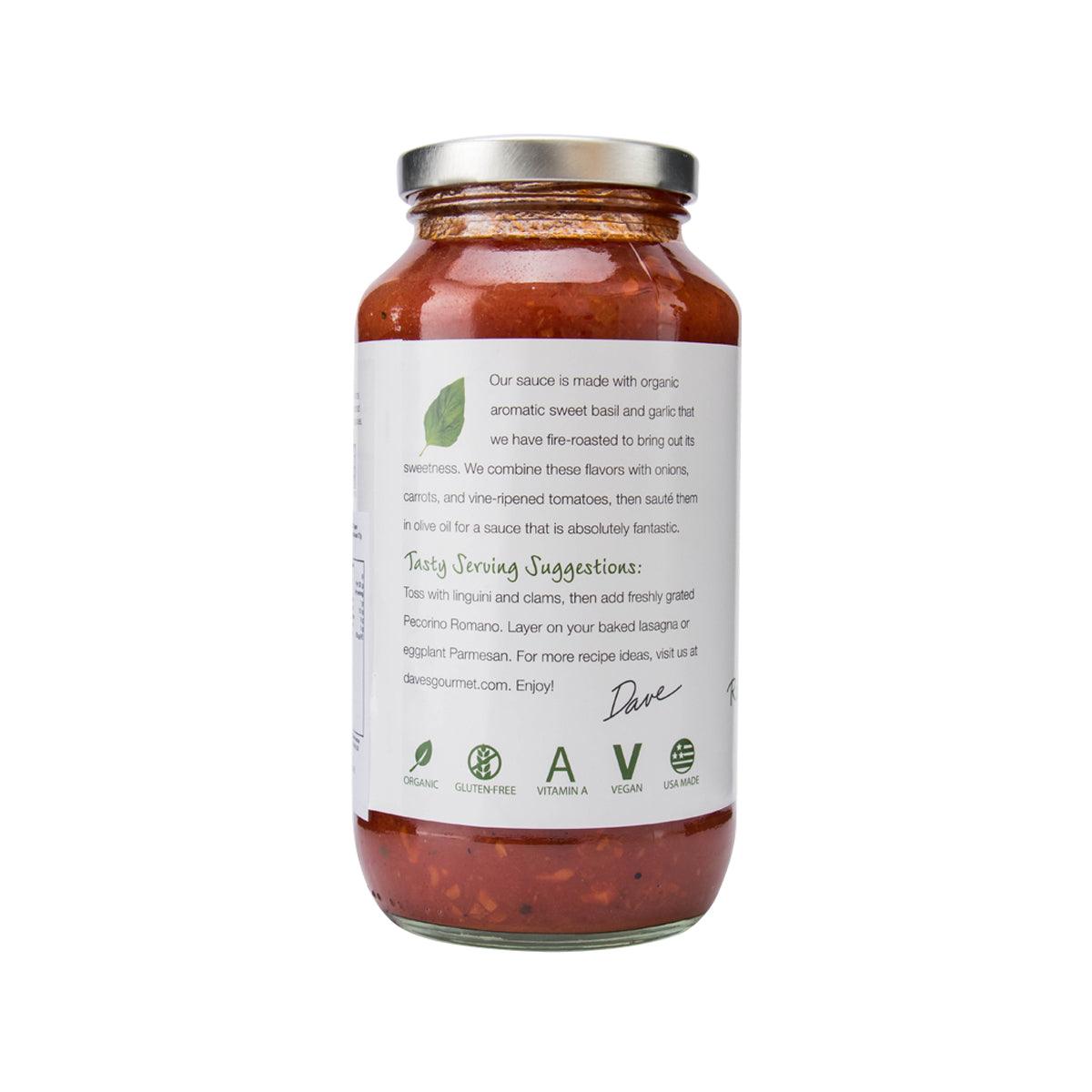 Sautéing onions, carrots, and vine-ripened tomatoes in olive oil, then combined with organic aromatic sweet basil and fire-roasted garlic to create this wonderful sauce. Made in the USA, this sweet, tasty sauce partners perfectly with linguine, lasagne, clams, eggplant and more.