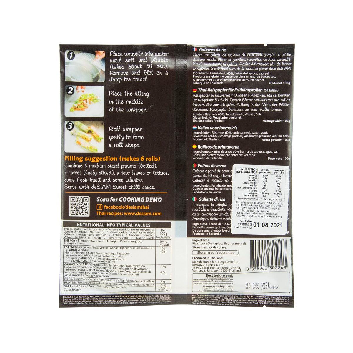 Produced in Thailand, free of preservative, additive and gluten, these Spring Roll Wrappers are delicious, fresh and easy to use. Just need to soak them in boiling water for about 1 minute until they’re soft, then place your favourite ingredients and mould each rice paper wrap gently to form a roll! Great as appetizers and lunch.