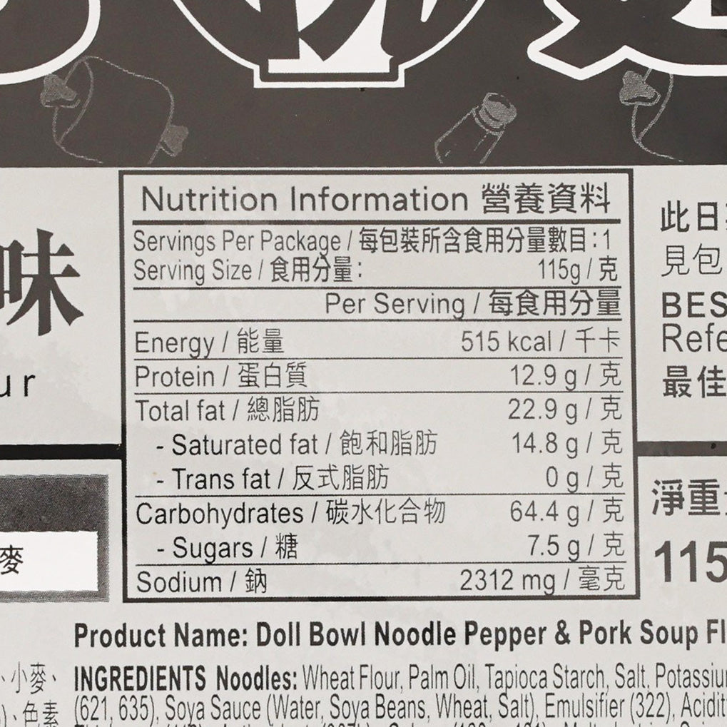 DOLL Bowl Noodle - Pepper & Pork Soup Flavour (115g)