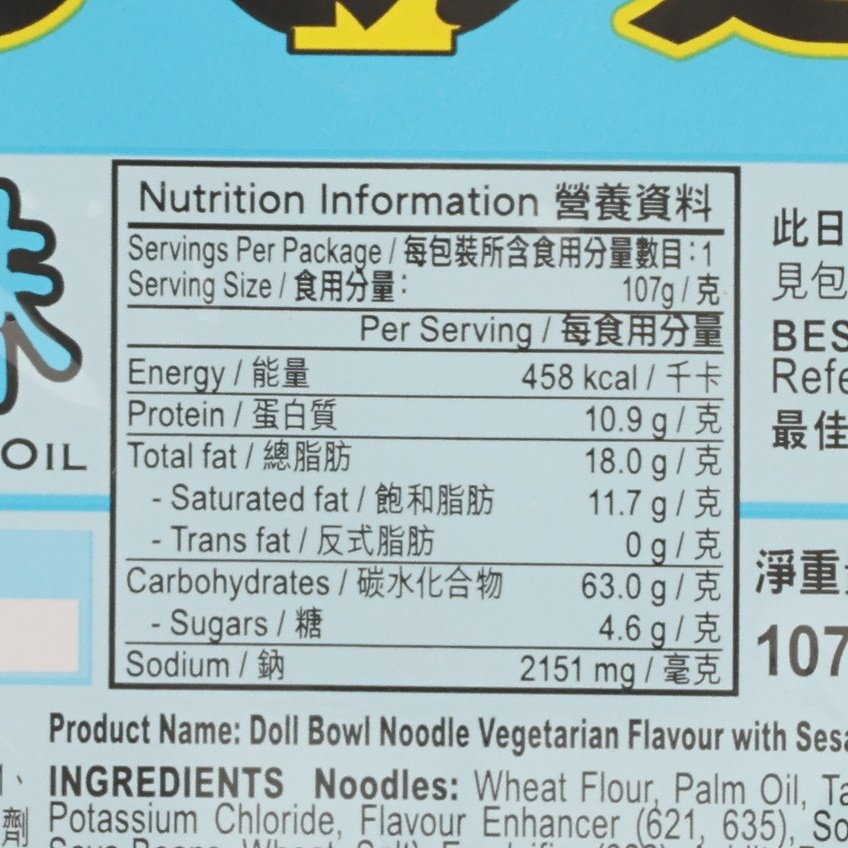 DOLL Bowl Noodle - Vegetarian Flavour with Sesame Oil (107g)