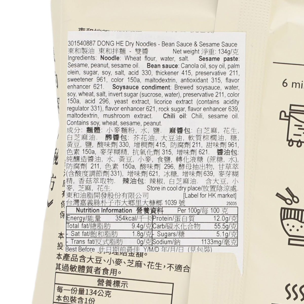 DONG HE Dry Noodles - Bean Sauce & Sesame Sauce (134g)