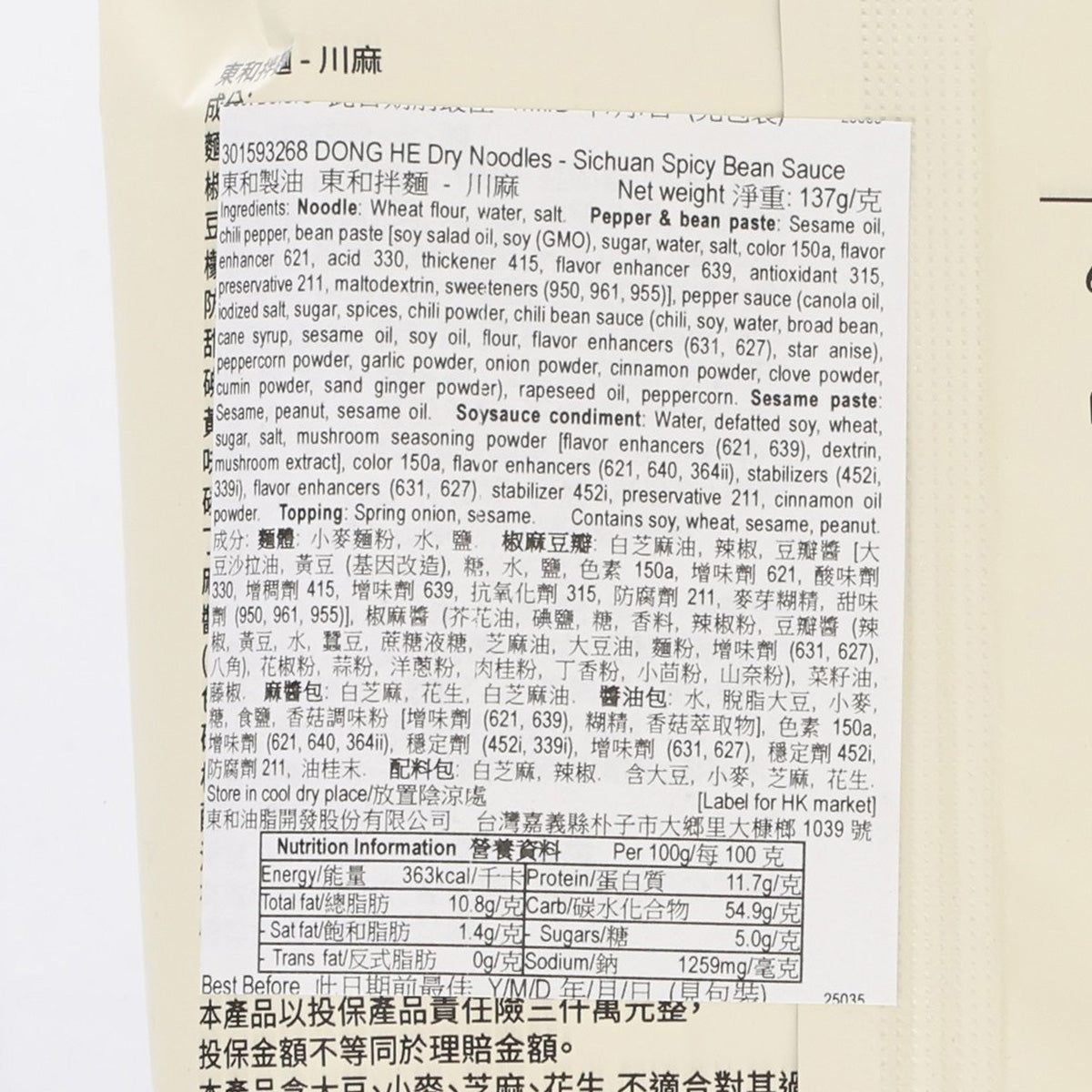 DONG HE Dry Noodles - Sichuan Spicy Bean Sauce  (137g)