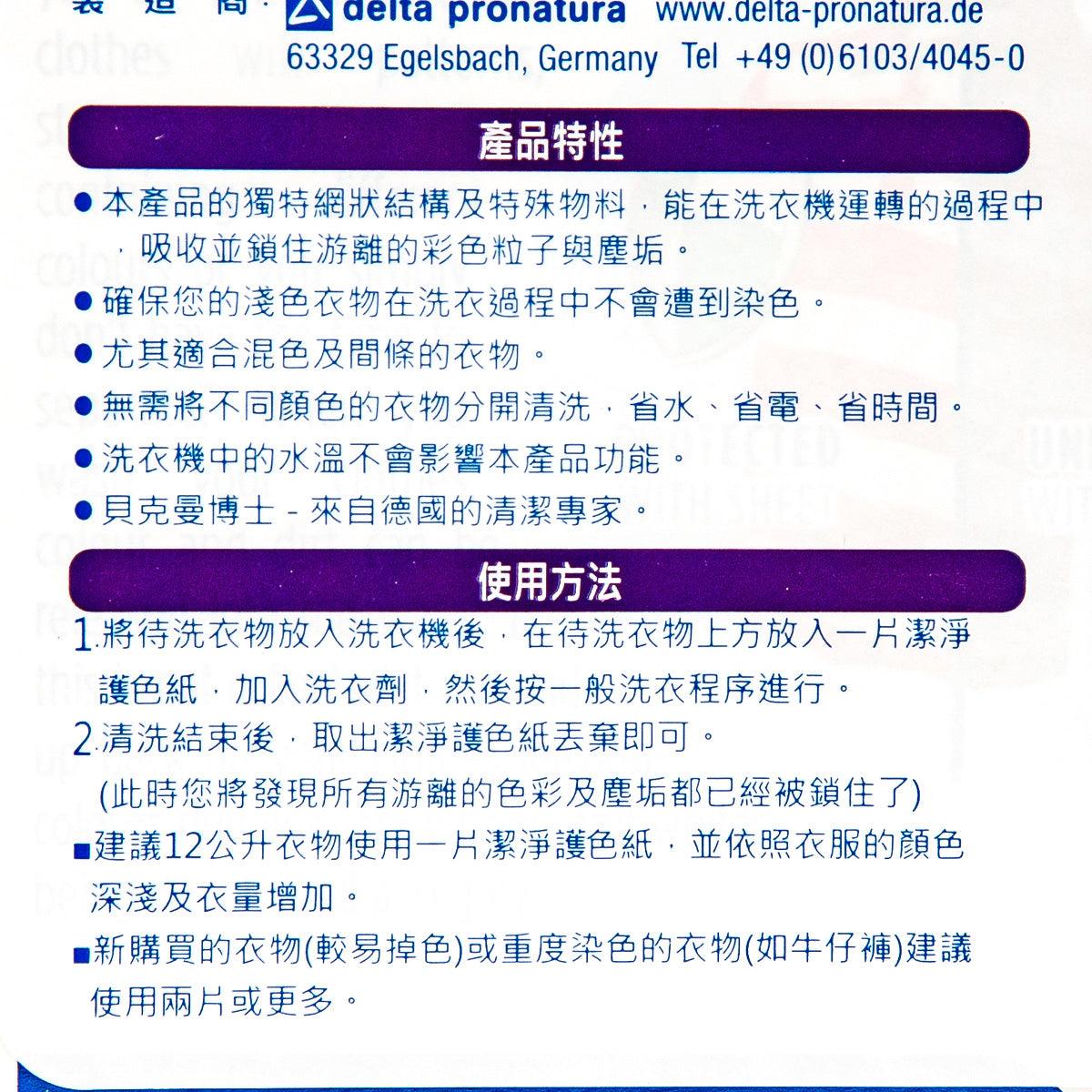 Based in Germany, the family-owned company founded in 1934 has been providing a range of easy-to-use products with effective and high performance for the specialist laundry and household cleaning. This sheet will collect the dirt and dye that come out of your clothes, transferring to others and causing colour loss and dullness of fabrics. It can keep your colours brighter for longer and you can wash mixed colours with confidence now!