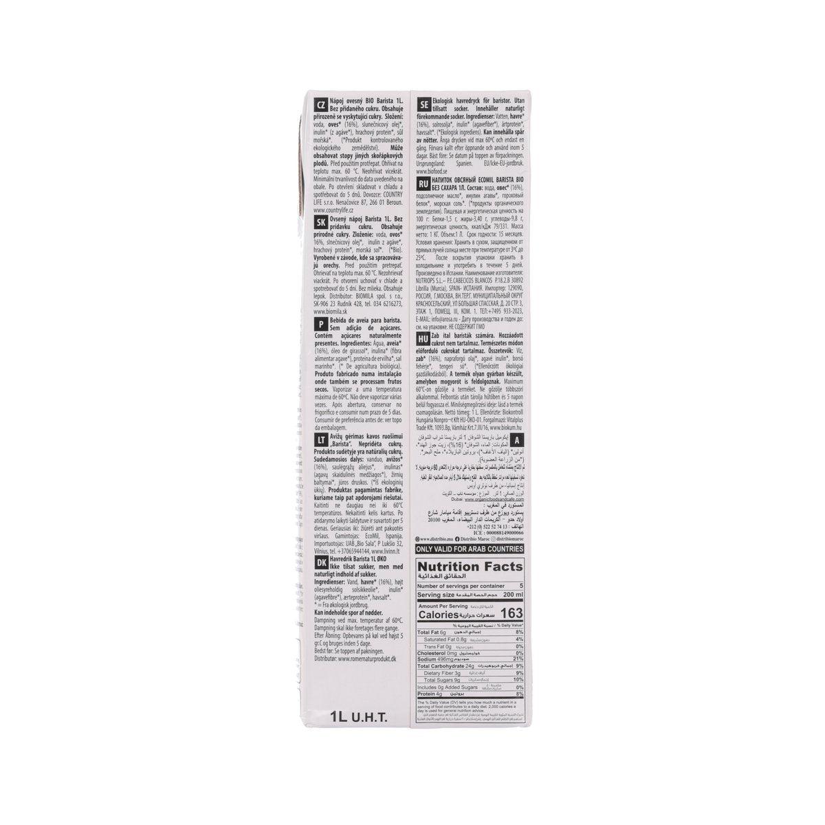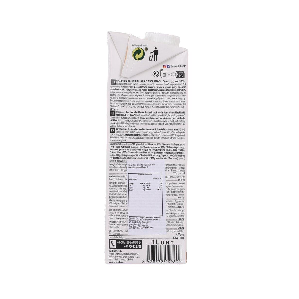 ECOMIL Organic Oat Drink [Barista] - No Added Sugar (1L)