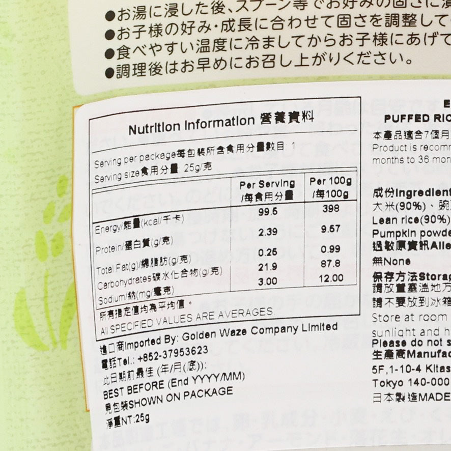 EDISON MAMA Puffed Rice Stick (Green Vegetables)  (25g)
