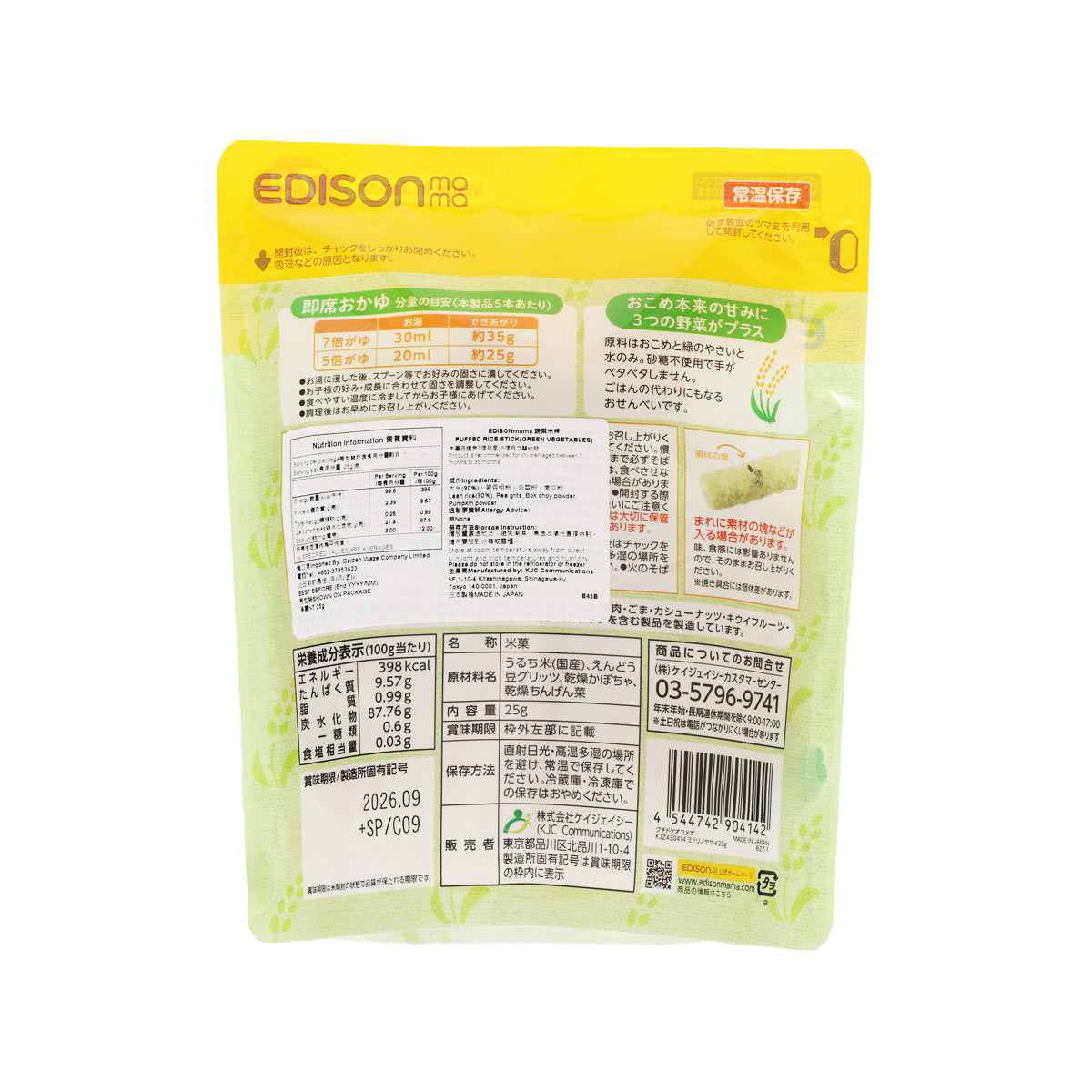 EDISON MAMA Puffed Rice Stick (Green Vegetables) (25g)