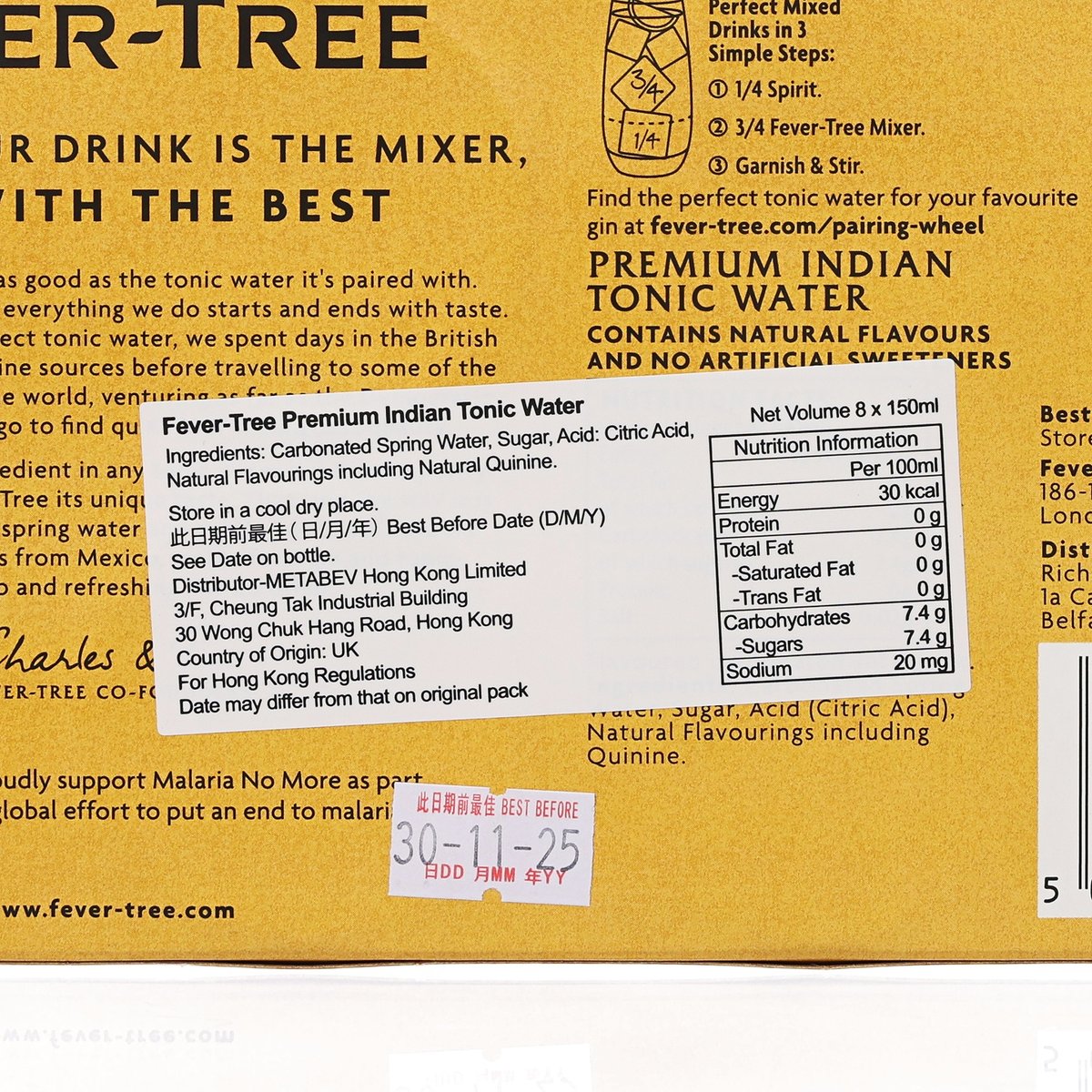 FEVER TREE Premium Indian Tonic Water [Pack] (8 x 150mL)