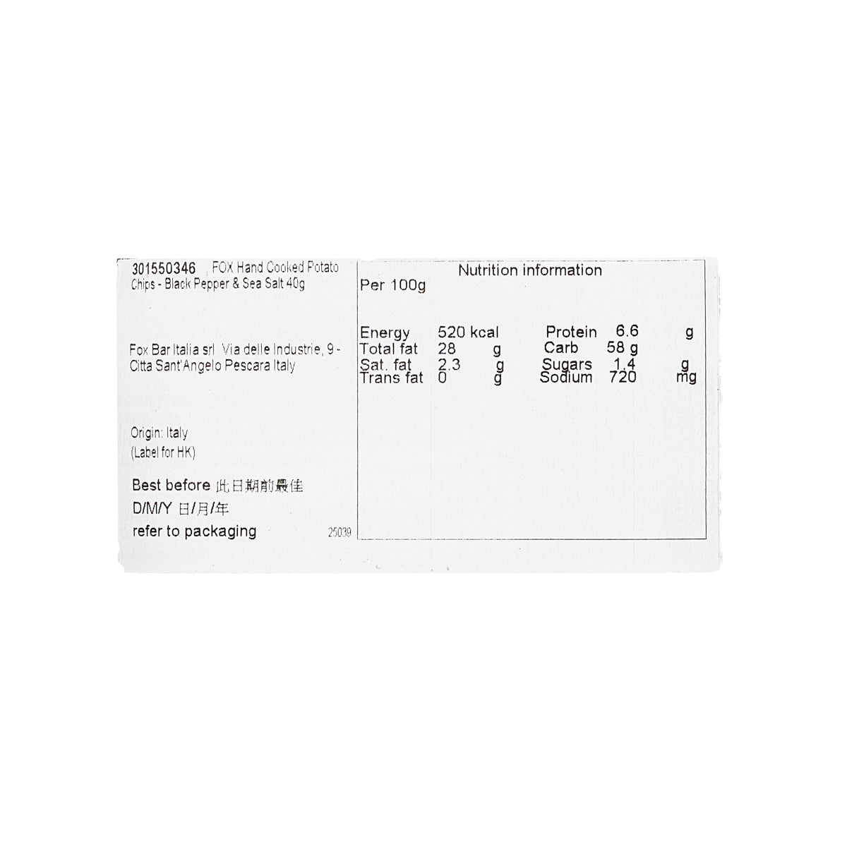 FOX Hand Cooked Potato Chips - Black Pepper & Sea Salt  (40g)