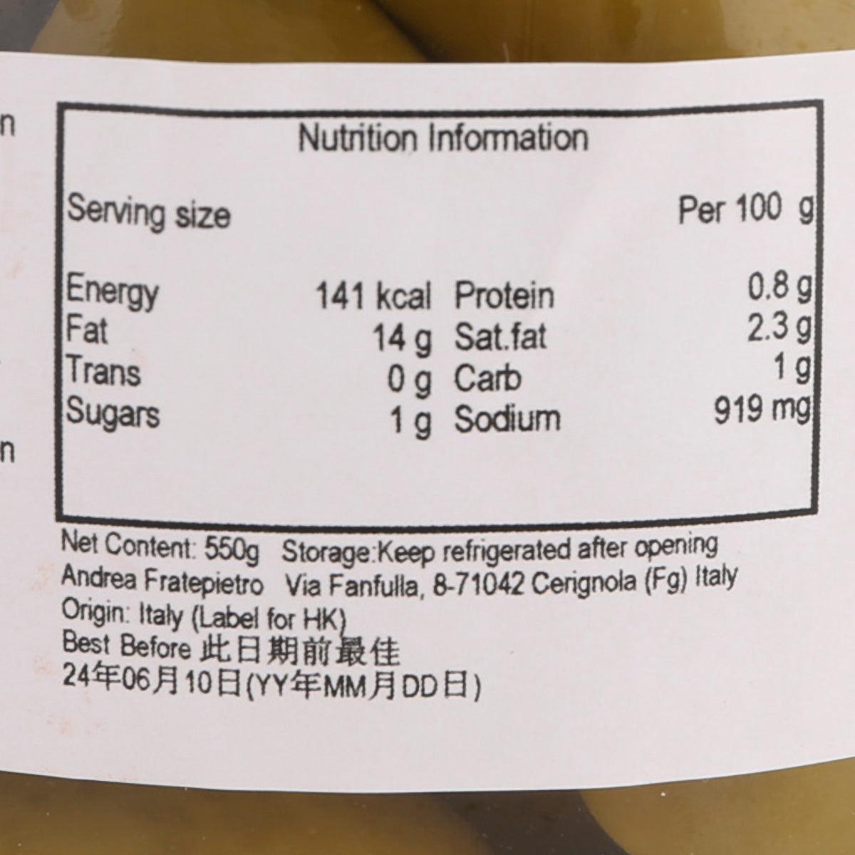 FRATEPIETRO Super Giant Green Olives in Brine (Size GGG) (550g)