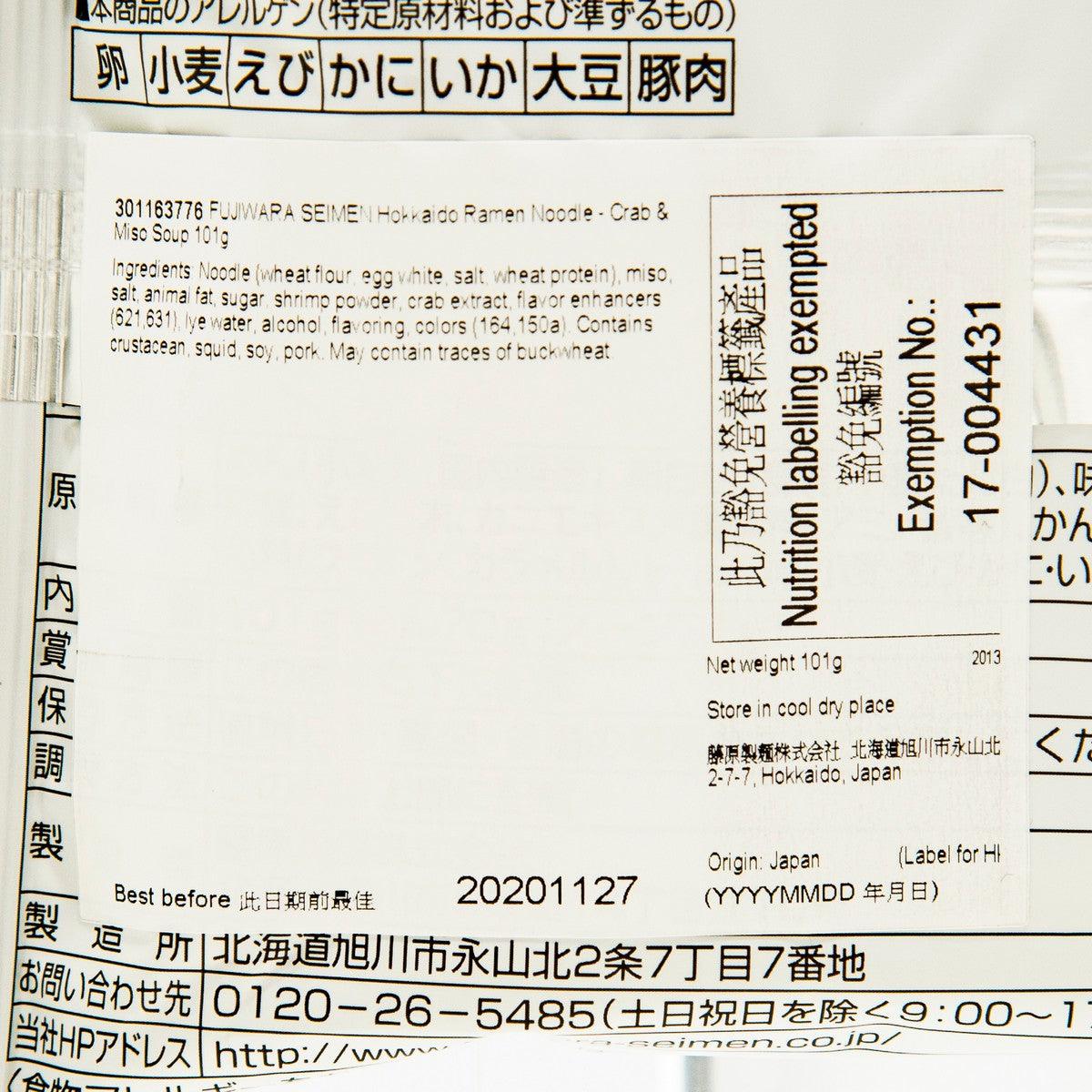 FUJIWARA SEIMEN Hokkaido Ramen Noodle - Crab & Miso Soup (101g)