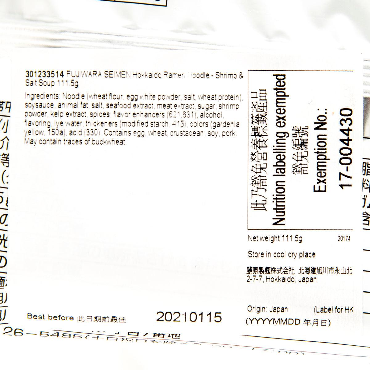 FUJIWARA SEIMEN Hokkaido Ramen Noodle - Shrimp & Salt Soup (111.5g)