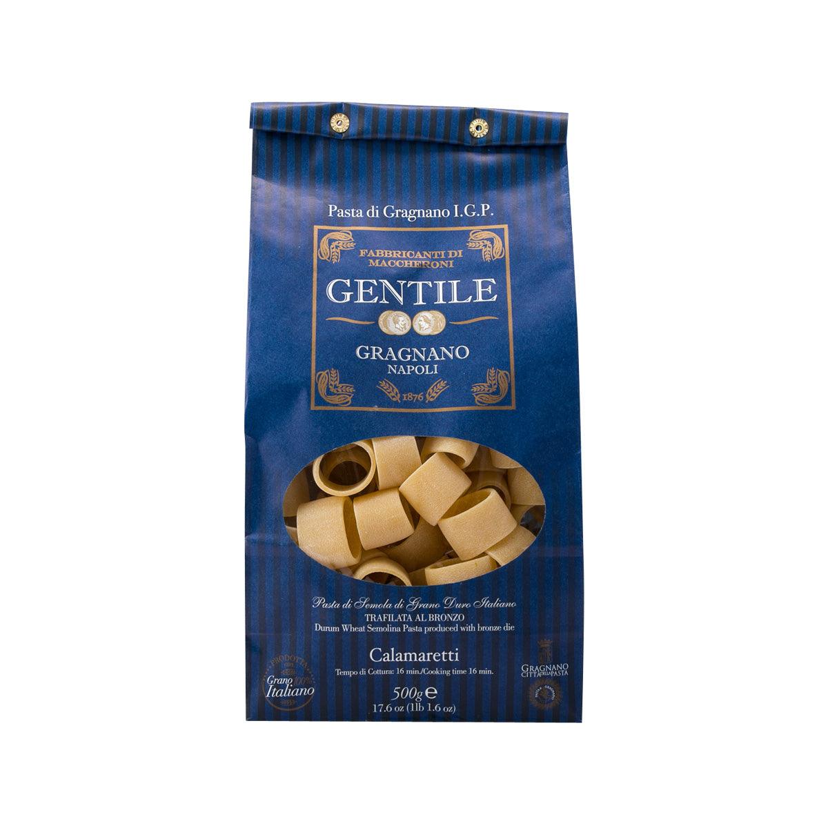 Founded in 1876, the brand is one of the historic artisan factories in Gragnano producing the high-quality pasta, preserves methods of craftsmanship and attention to every single detail. Calamaretti is ring-shaped pasta that's named for its resemblance to squid, or calamari, ideal for serving with seafood.