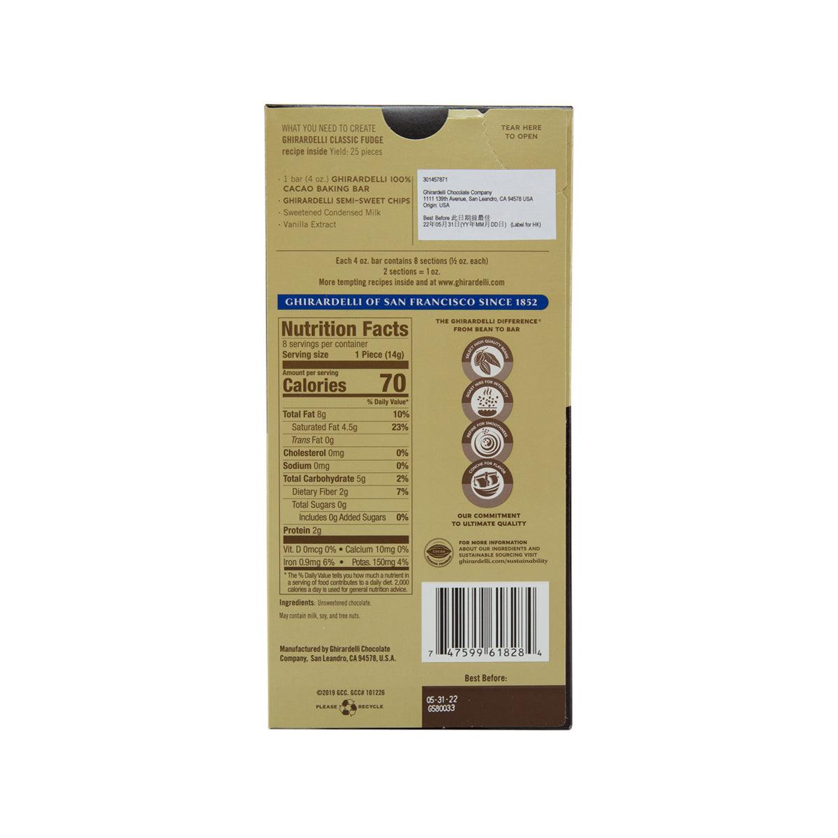 GHIRARDELLI Premium Unsweetened Chocolate Baking Bar - 100% Cacao (113.5g)