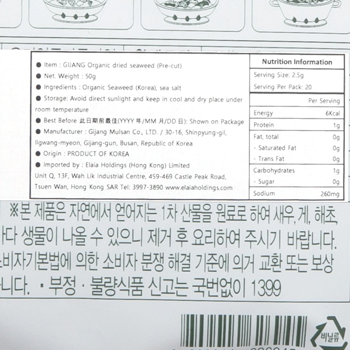 GIJANGMULSAN Organic Dried Seaweed (50g)