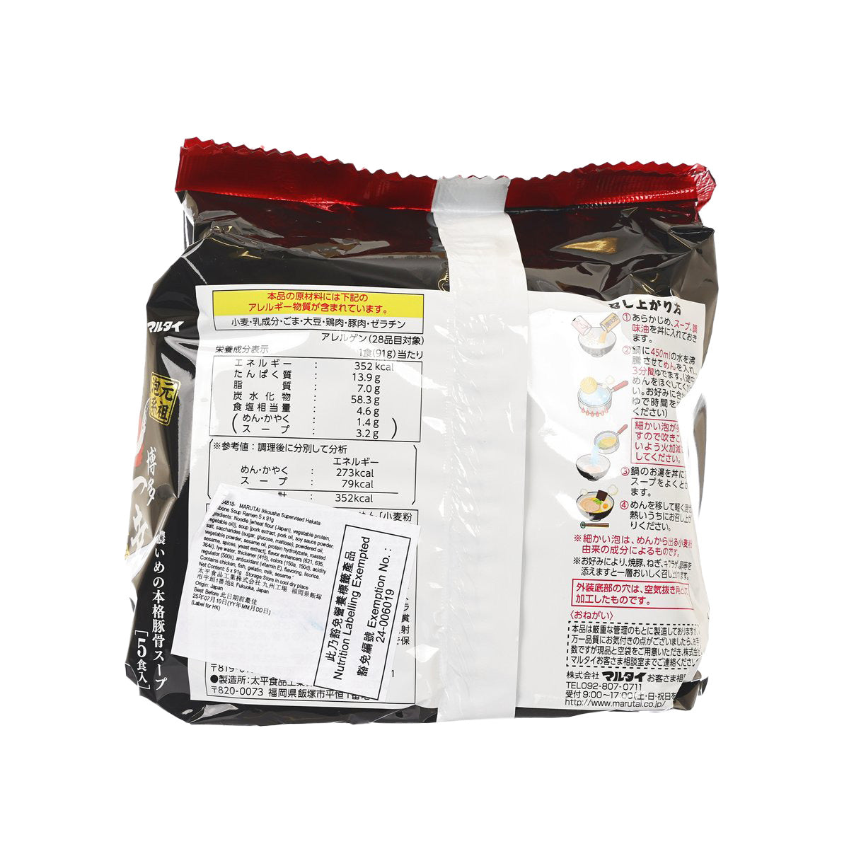 MARUTAI Ikkousha Supervised Hakata Porkbone Soup Ramen (5 x 91g)