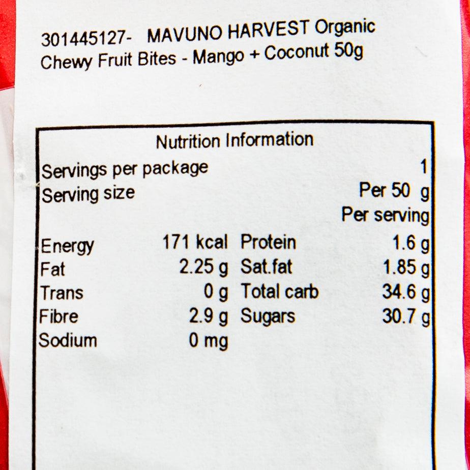 MAVUNO HARVEST Organic Chewy Fruit Bites - Mango + Coconut (55g)