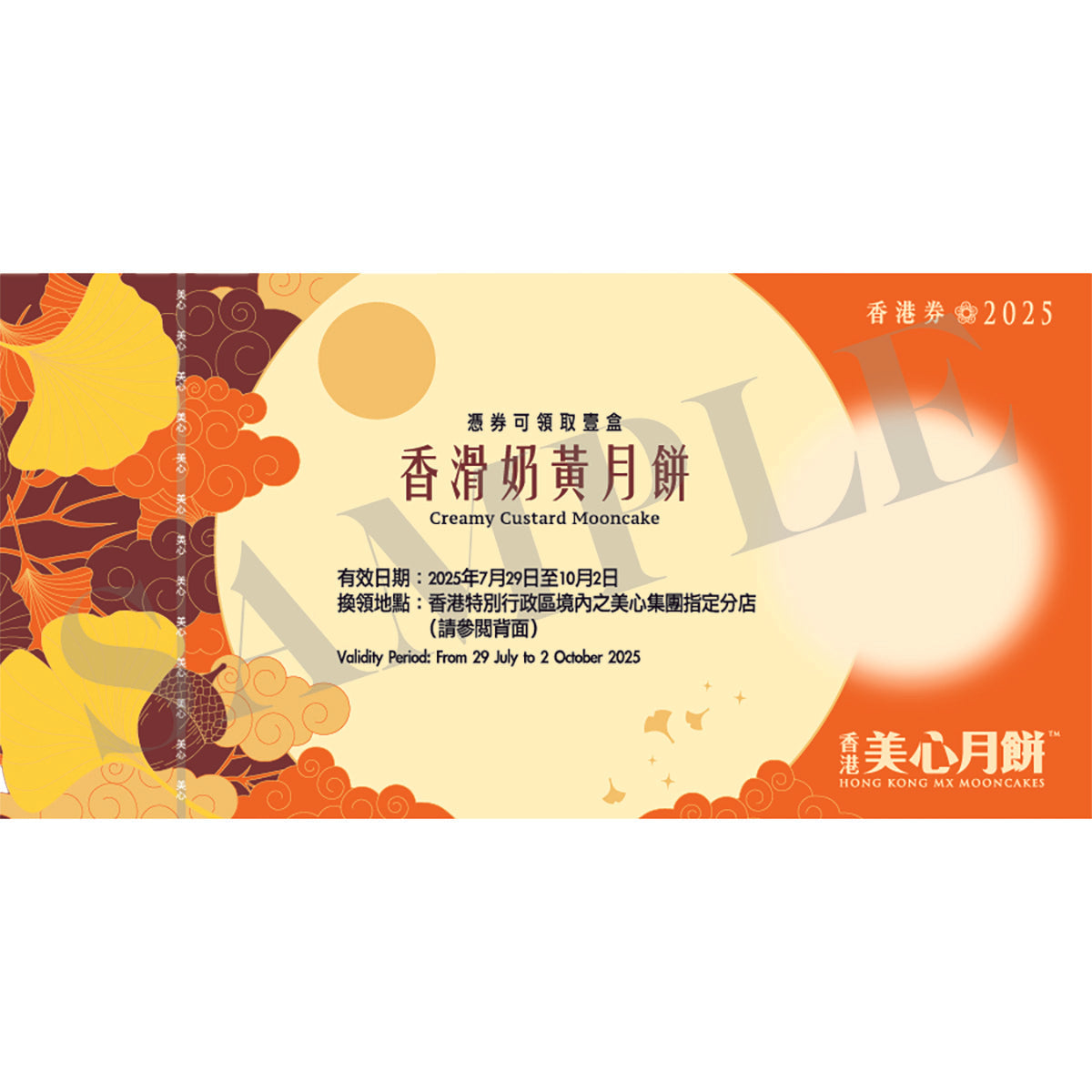 - Please refer to (www.maxims.com.hk/mooncakes/redemption/) for redemption details of physical goods.
