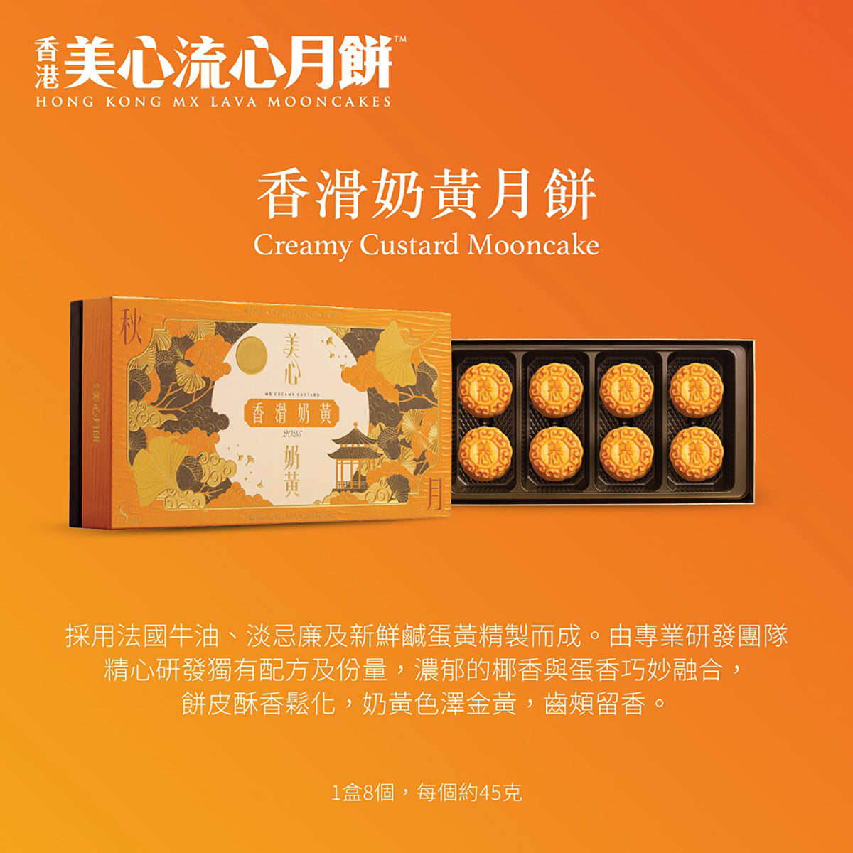 - The milky golden hue and the lingering aroma of custard, made with French butter, light cream, and salted egg yolks in a uniquely balanced formula, present the ideal flavor journey that will make your Mid-Autumn much more special.