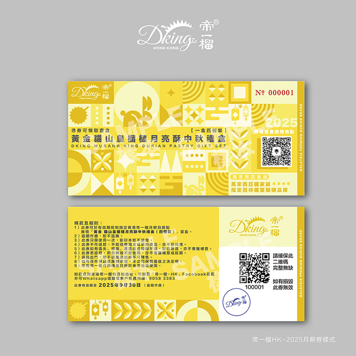 8. All Dking Mooncake vouchers are only valid in Hong Kong. For the address of the Dking Hong Kong Mooncake redemption points, please visit the "Dking-hk" Facebook page or Whatsapp call the customer service hotline: 9058 3383