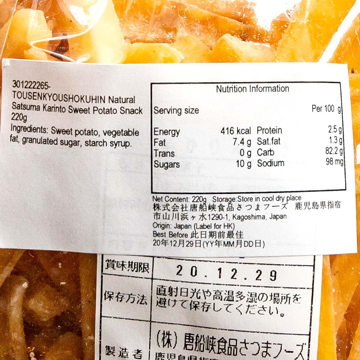 TOUSENKYOUSHOKUHIN Natural Satsuma Karinto Sweet Potato Snack (220g)